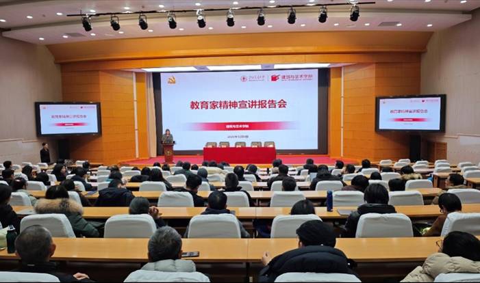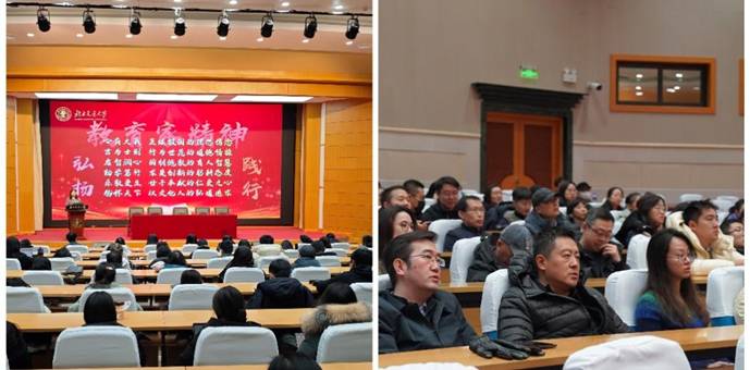 为深入弘扬教育家精神,引导全院教师坚守育人初心、涵养高尚师德,2025年12月4日下午,色情直播 在科学会堂召开全院教师大会暨教育家精神宣讲报告会。色情直播党委书记秦思阳、院长张野、副院长佘高红和全体教职工参加会议,会议由色情直播学工办主任张京主持。